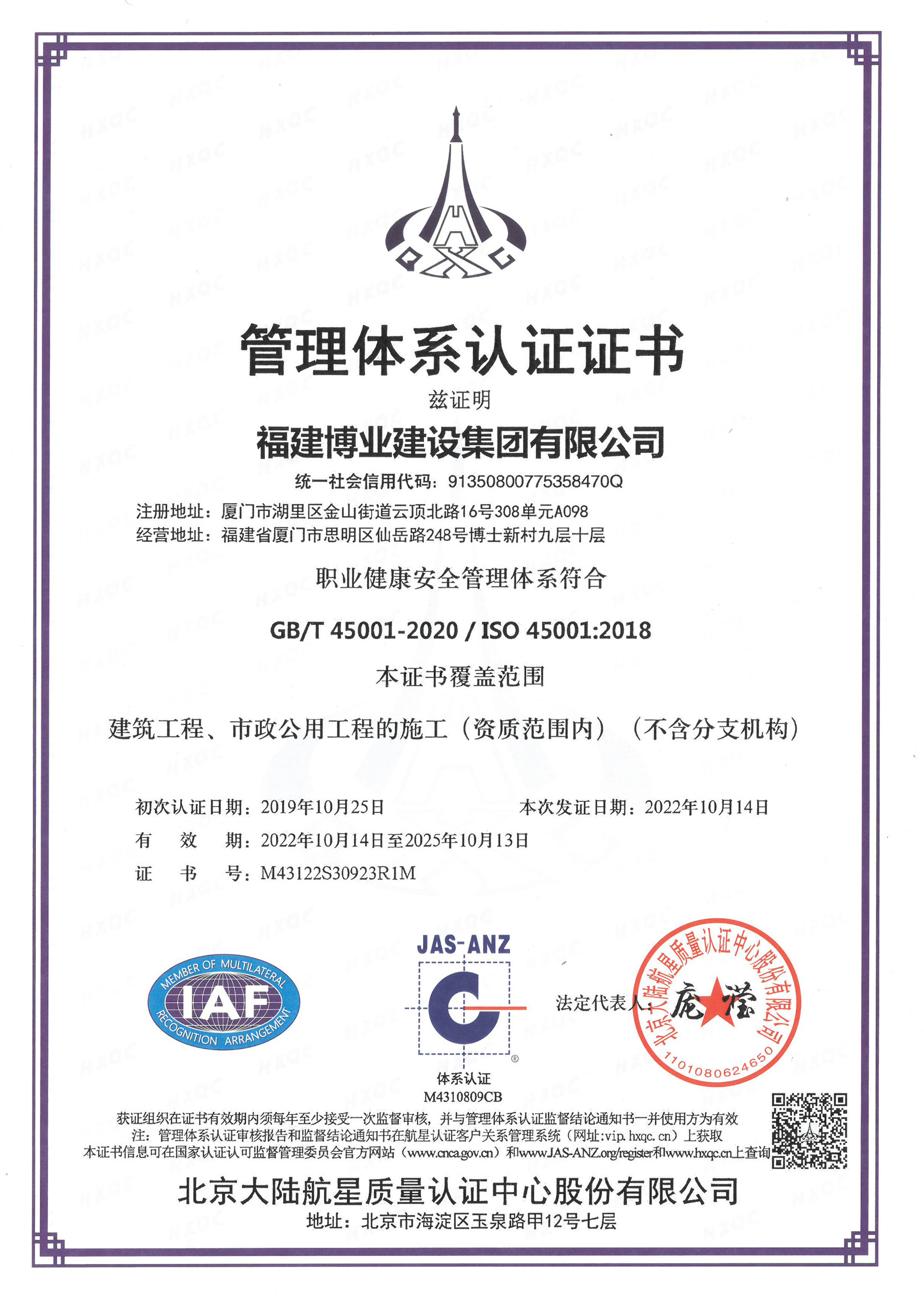 安全生产标准化一级企业(建筑施工)